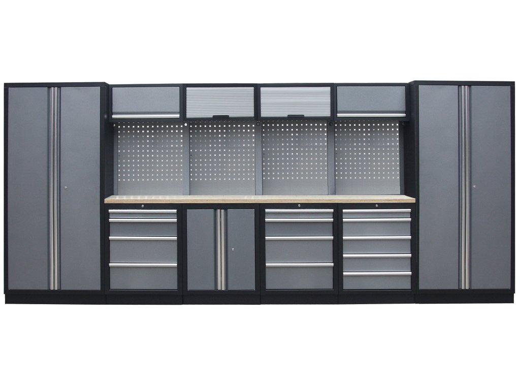 Sestava nábytku v sobě skrývá dostatečné množství úložného prostoru pro vaše nářadí, autotechniku i dílenské vybavení. V kombinaci s bytelnou pracovní deskou získáte multifunkční stěnu, se kterou vám půjde práce od ruky ve všech směrech.