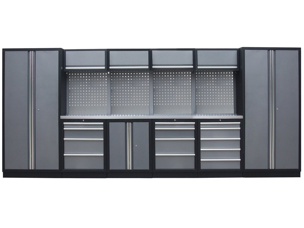 Sestava nábytku v sobě skrývá dostatečné množství úložného prostoru pro vaše nářadí, autotechniku i dílenské vybavení. V kombinaci s bytelnou pracovní deskou získáte multifunkční stěnu, se kterou vám půjde práce od ruky ve všech směrech.
