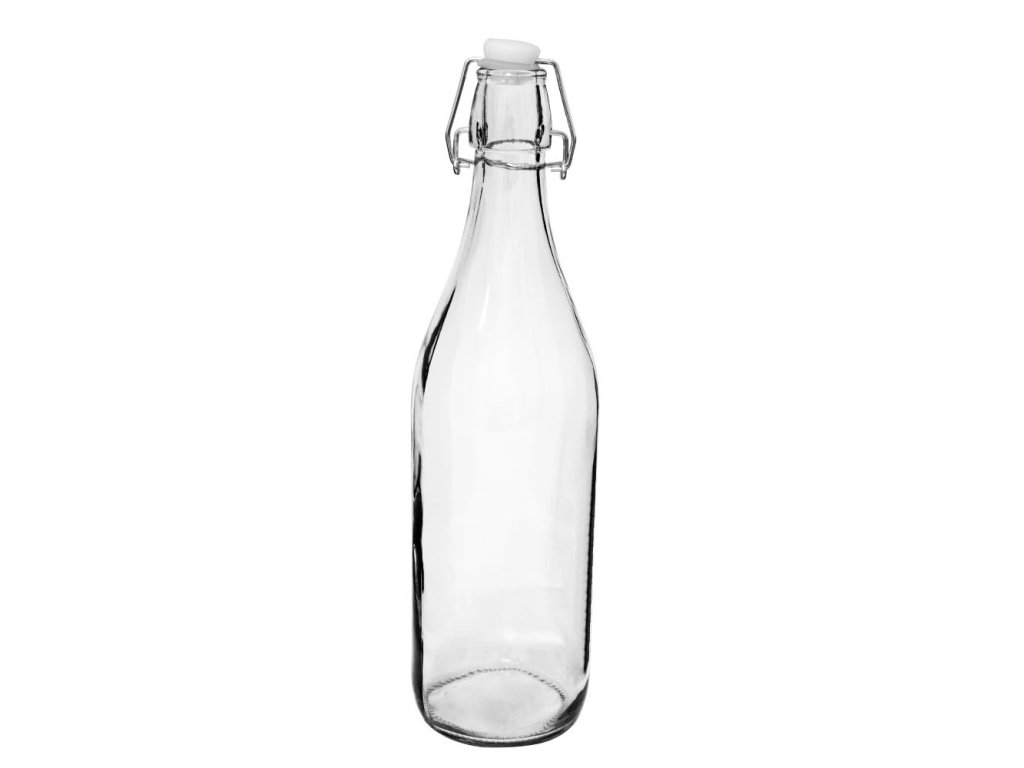 Skleněná láhev kulatého tvaru vhodná na olej, ocet, sirup atd.Patentní uzávěr zabrání vytečení náplně v každé poloze.