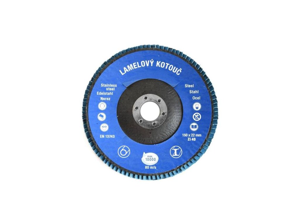Lamelový brusný kotouč Zirkon Ø150 x 22 mm, zrnitost 40