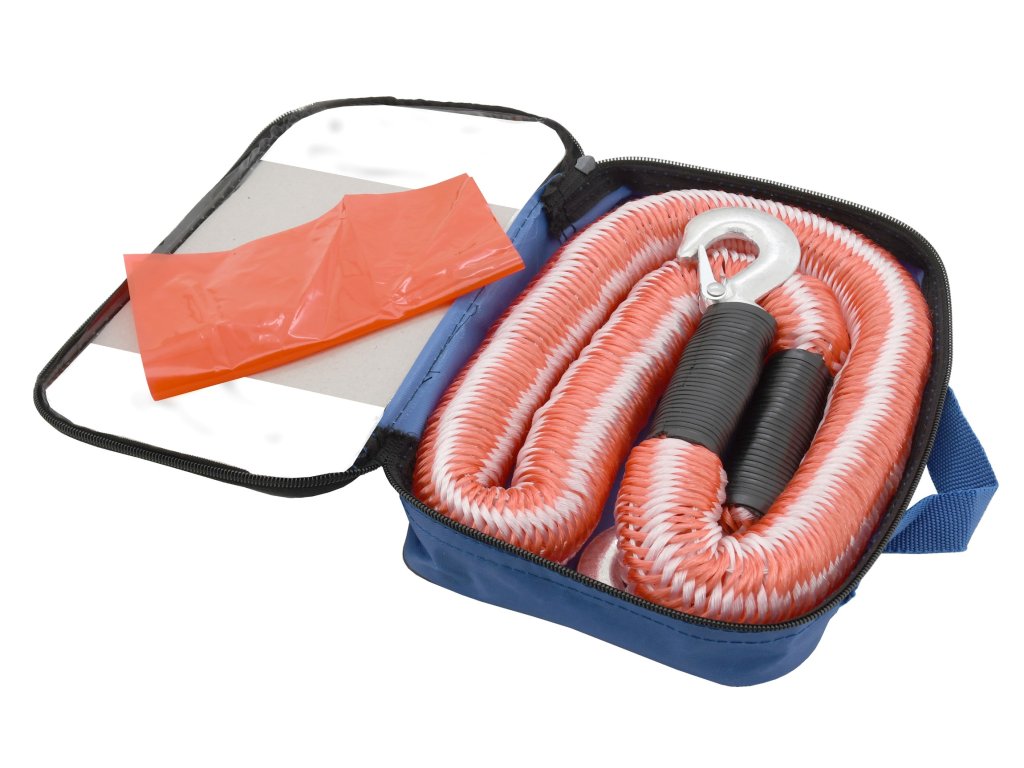 Pružné autolano, tažné lano pro osobní automobily do celkové hmotnosti 3000 kg. Lano je uloženo v praktické na zip uzavíratelné brašně.