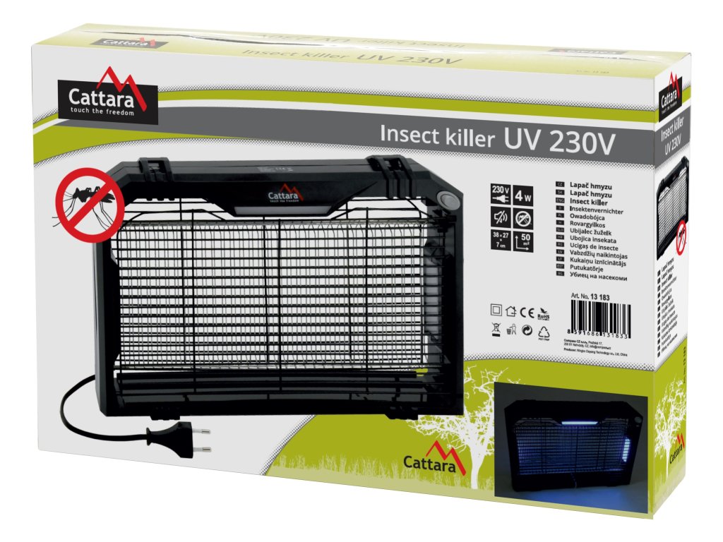 Elektronický lapač hmyzu využívá světlo s ultra fialovými paprsky, kterými efektivně láká létavý hmyz (např. mouchy, můry, moly, komáry a další). Hmyz je po kontaktu s kovovou sítí pod vysokým napětím zahuben elektrickým proudem. Přístroj k hubení nevyužívá žádných chemických látek, pracuje bez zápachu a bez znečištění.
