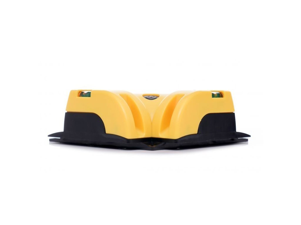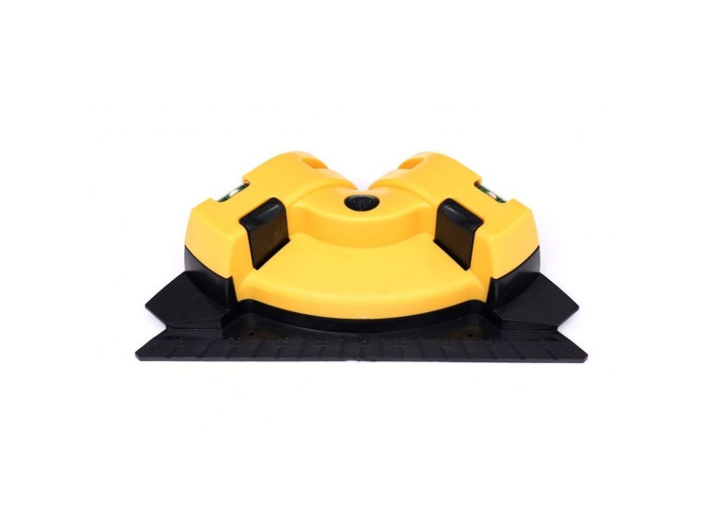 Laserový úhelník se dvěma paprsky a dvěma libelami pro vyrovnávání obkladů, dlažby a dalších materiálů ve vodorovném i svislém směru pod úhlem 90°. Úhelník má stupnici 0 - 90° s dělením po 5°, dosah je až 15 m. Jednoduché ovládání jedním tlačítkem. Dvě červené, jasně viditelné linky definují přesný úhel 90°! Přísavky v základně zajišťují stabilní připevnění k hladkému povrchu v horizontální i vertikální rovině.