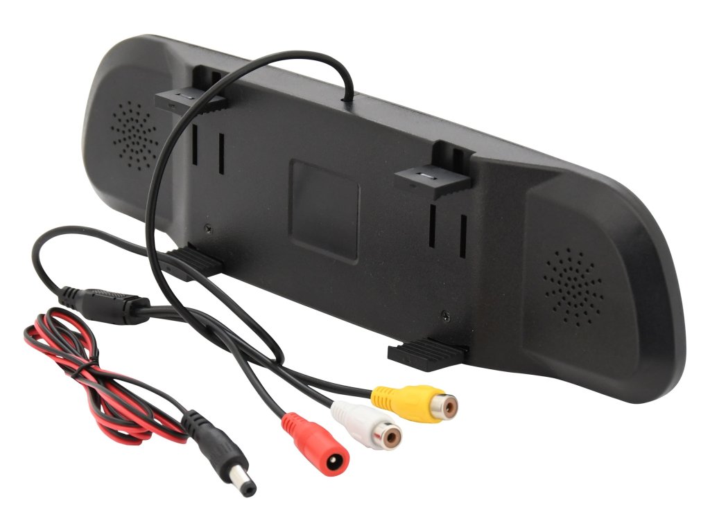 Přídavné zrcátko se zabudovaným LCD displejem, ideální pro použití s parkovací kamerou i k přehrávání NTSC/PAL videí z jakéhokoliv přehrávače s výstupním Cinch (RCA) kabelem.