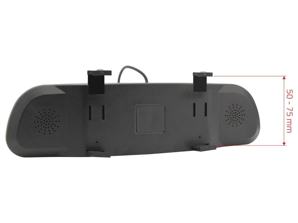 Pomocí zabudovaných klipů (50-75 mm) je snadné toto zrcátko s displejem jednoduše nasadit na většinu běžných zpětných zrcátek v automobilu. Rozměry zrcátka s displejem 27,2 cm x 6 cm. Samotný displej s úhlopříčkou 4,3" má rozměry 9,4 x 5,3 cm. Díky jedinečné technologii není ve vypnutém stavu displej vůbec viditelný a celá plocha zrcátka je tak využitelná jako standartní zpětné zrcátko.
