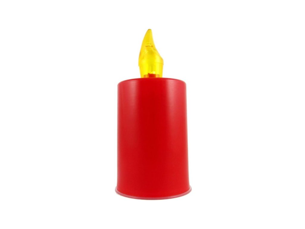 ČERVENÁ SVÍČKA SE ŽLUTÝM PLAMÍNKEM, IMITACE HOŘÍCÍ SVÍČKYVytváří atmosféru hořící svíčky. Svítí stále.