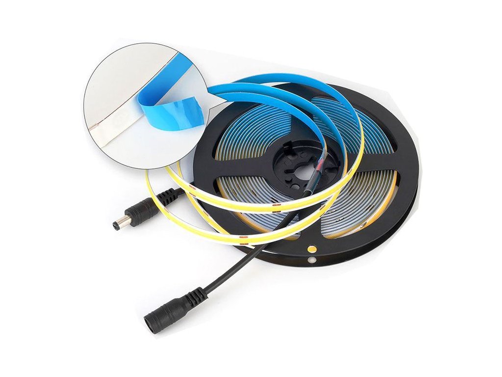 LED pásek 8mm bílý teplý, FCOB 360 LED/m, IP20, cívka 5m Samolepící pásek, šířka 8mm.360x LED COB na 1m.
