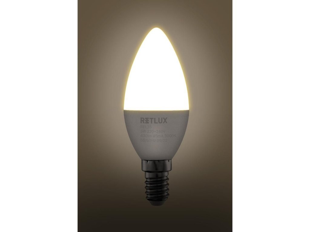 LED žárovka Candle 5 W s paticí E14 v ekonomické sadě 4 ks. Jedná se o nástupce produktu REL 25.