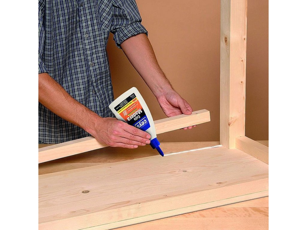 Pro kompletní slepení povrchu naneste lepidlo v dostatečném množství na čisté dřevo. Držte díly spojené po dobu 5 minut.