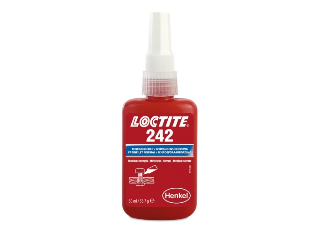 Samovolné uvolnění šroubů je problém, který může být v mnoha případech velmi nebezpečný. Zajišťovač závitových spojů Loctite 242, který závit zároveň dokonale utěsní, zabraňuje samovolnému povolení, ke kterému dochází právě kvůli častým vibracím a rázům. Loctite 242 se nanáší přímo na závit, kde následně ve spáře mezi oběma plochami vytvrdne a tím spoj zabezpečí i utěsní zároveň. Loctite 242 je středněpevnostní zajišťovač, takže je možné ho následně kdykoli po vytvrzení manuálně demontovat. Loctite 242 se vyznačuje taktéž zvýšenou odolností vůči teplotě, a to až do 150 °C. Doporučujeme pro různé zajištění šroubů elektronických součástek, konektorů, stavěcích šroubů a podobně.