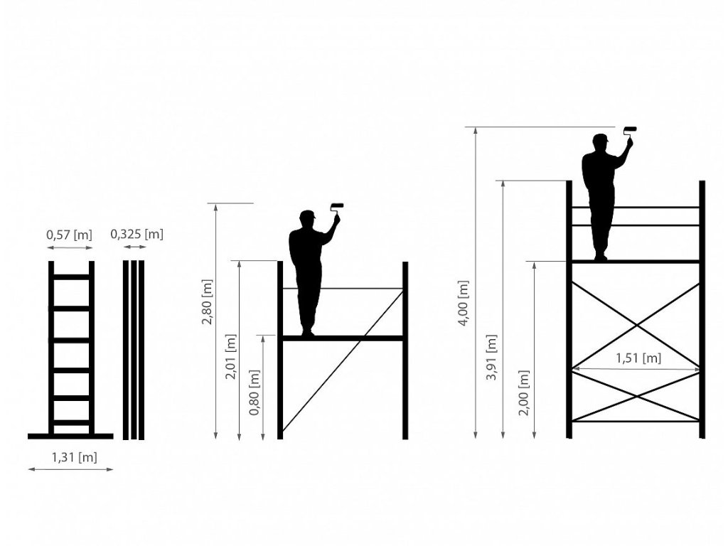 3v1: lešení, pochozí žebříky, volně stojící žebřík.