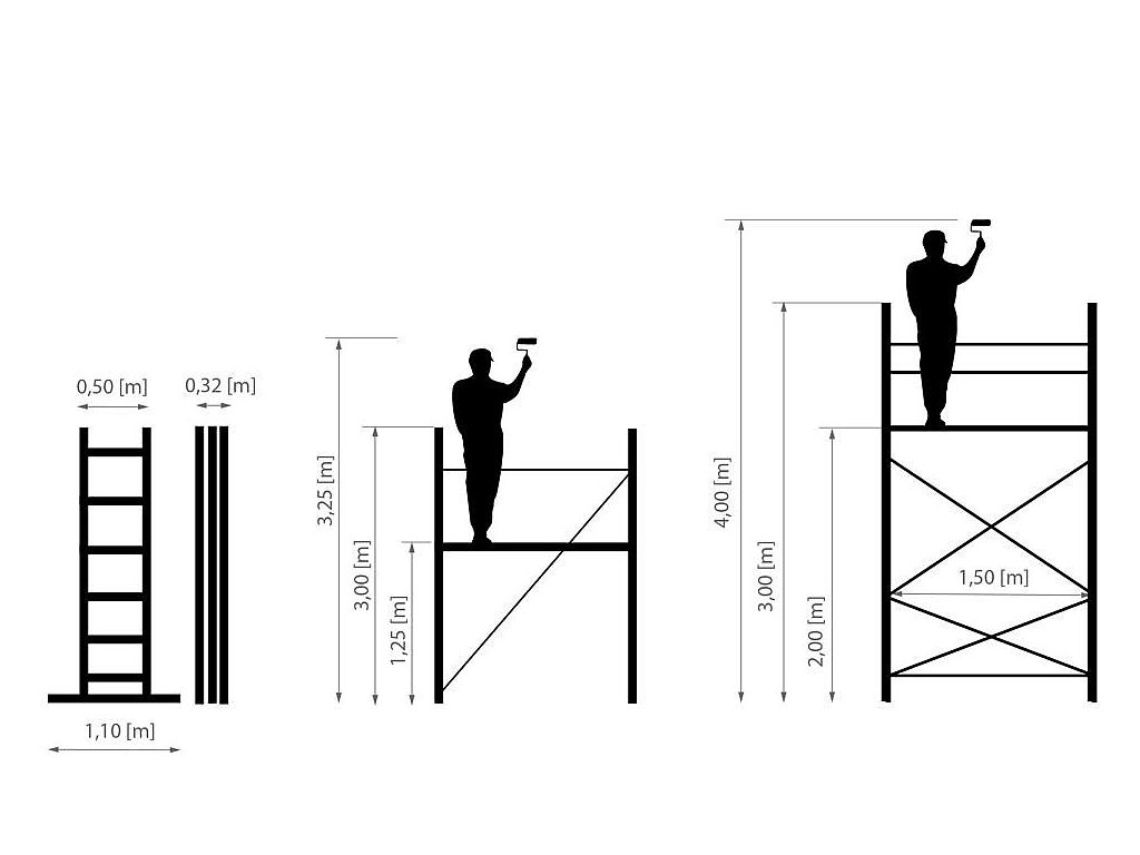 3v1: lešení, naklápěcí žebřík, volně stojící žebřík.