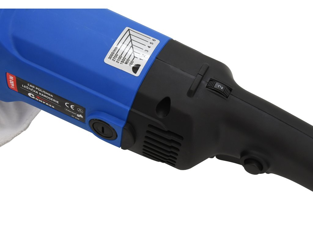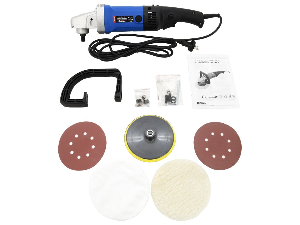 Leštička karoserie s příkonem 1400 W s leštícím kotoučem 180 mm a plynulou regulací otáček 600-3000/min. Skříň převodovky je vyrobena z kvalitní Al slitiny, zámek vřetene umožňuje snadnou a rychlou výměnu kotouče.