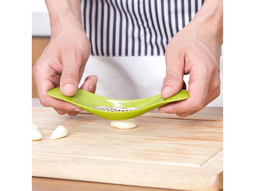 Vynikající česnekový lis, zařízení, které vám umožní rychle a efektivně brousit česnek na malé kousky.Ergonomický tvar zařízení umožňuje pohodlné používání.