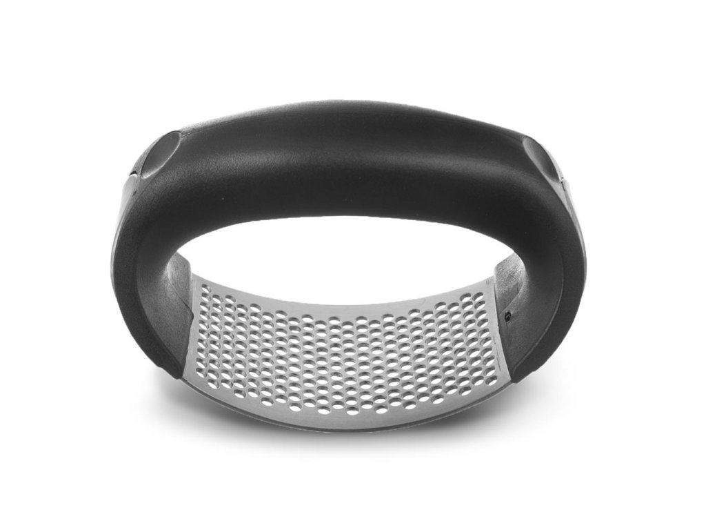 Kolébkový lis mačkadlo na česnek.Jeho přitlačením na stroužek česneku a kolébáním ze strany na stranu protlačíte česnek otvory.
