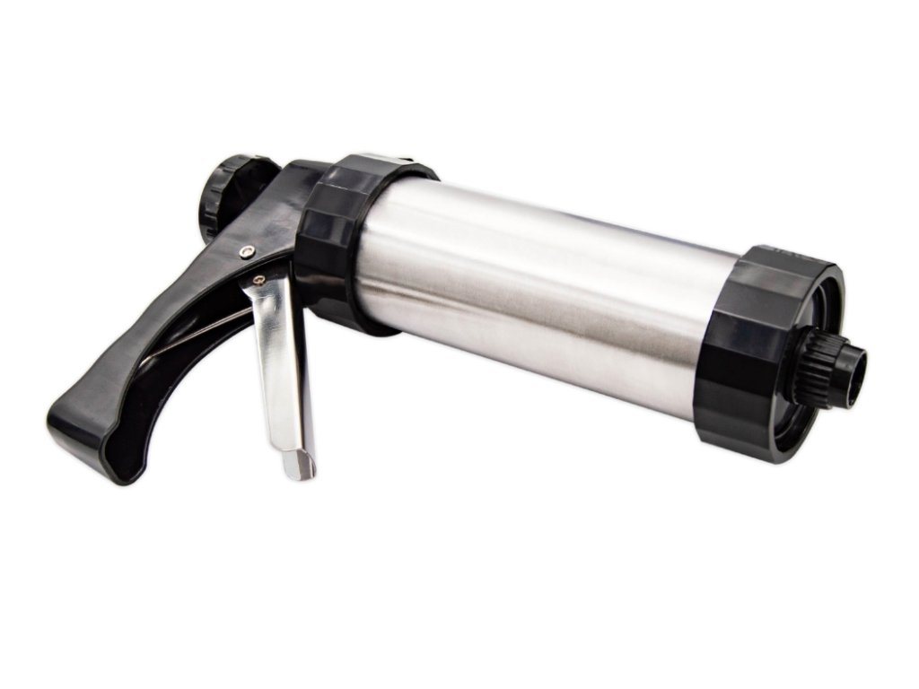 Jednoduchá manipulace pomocí pístu, dávkování těsta na cukroví pomocí krokovacího systému táhla pístu.