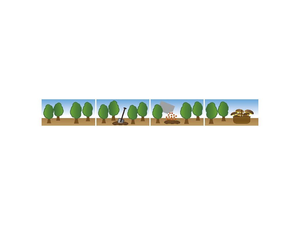 Vykopejte několik menších děr kolem stromu ( nejlépe, aby byly vidět kořeny ). Vsypte okolo 0,5 l připraveného substrátu a zakryjte 5 centimetrovou vrstvou zeminy. V místech kde jsme takto nasypali substrát je vhodné použit mulčovací kůru, jehličí nebo listí. Takto připravené místo nevyžaduje žádné další úpravy, jen občas podlít menším množstvím vody. Hlavně v období, kdy 10 až 14 dní napršelo. Zakládat sadbu lze od dubna do pozdního podzimu, ale první houby se mohou objevit až po 2-3 letech od založení.