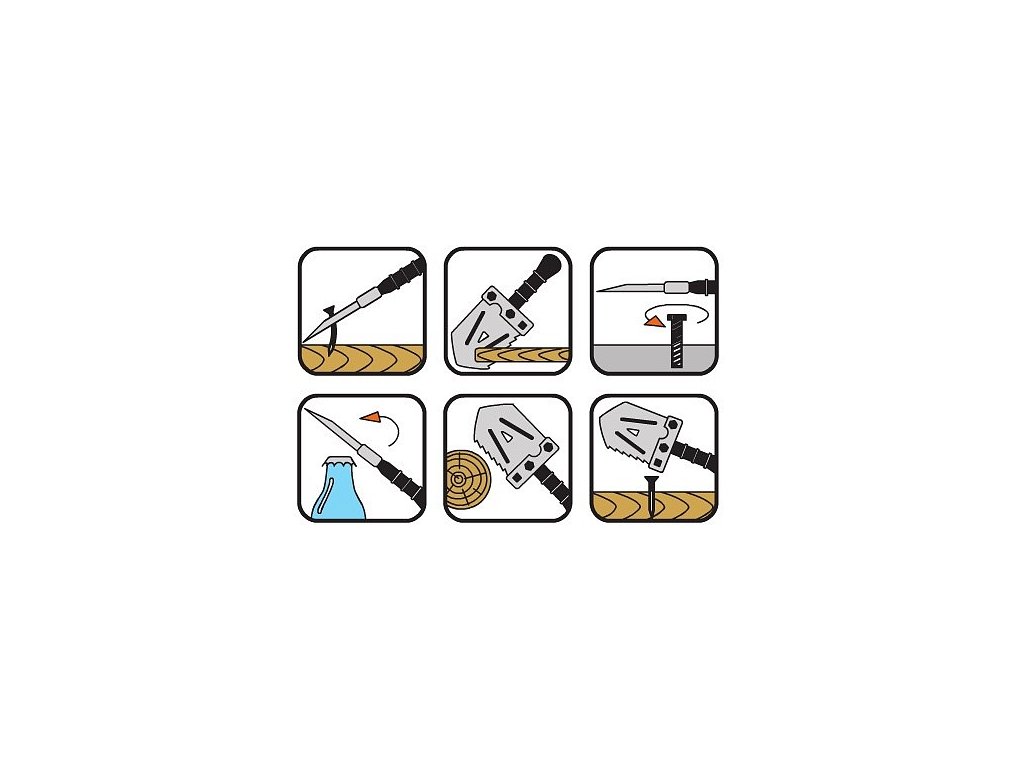 Lopatka s pouzdrem na pásek je ideální pro všechny trampy, rybáře, militaristy, hledače pokladů a milovníky outdoorových aktivit. Lopatka má více funkcí. Lopatka má dutou rukojeť, kde naleznete nástroje nutné k přežití (vlasec na ryby, sirky, hřebík a kompas).