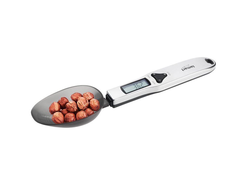 Nerezová kuchyňská vážící lžíce s plastovou odnímatelnou částí určená pro domácí použití. Vynikající pro rychlé a snadné vážení všech sypkých a tekutých potravin až do hmotnosti 500g. Funkce postupného dovažování a nulování hmotnosti ( TARA) s možností postupného vážení více potravin ve lžíci současně..
