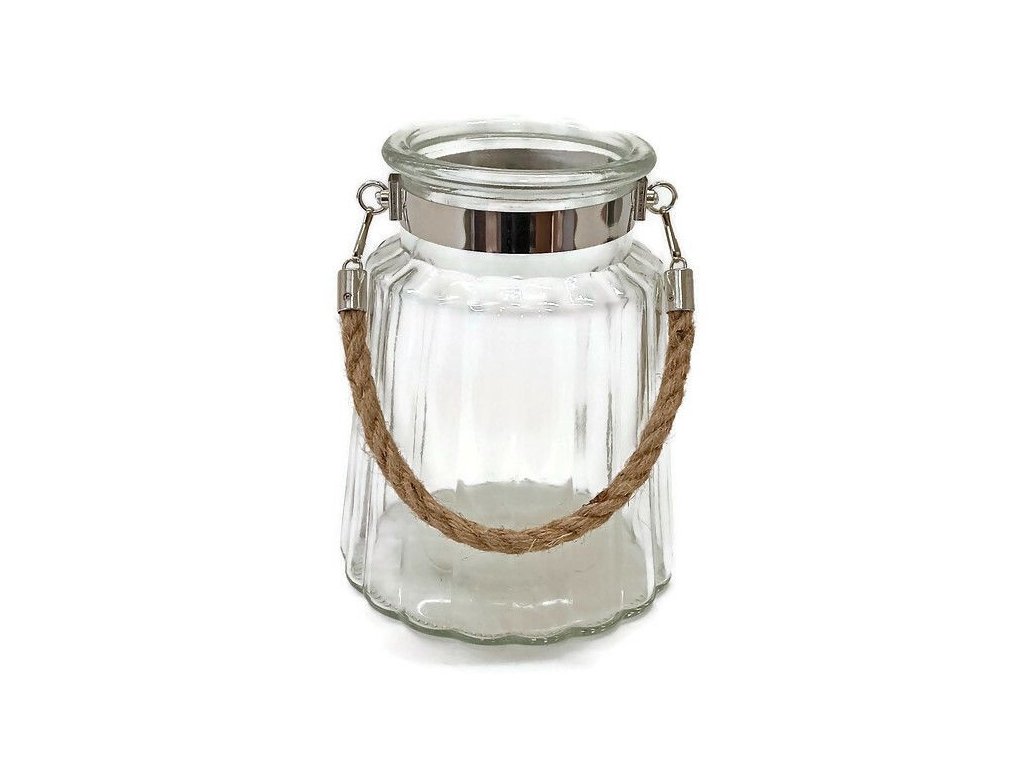 Skleněná lucerna slouží jako doplněk k osvětlení vaší zahrady nebo domácnosti.Lucerna je opatřena jutovým poutkem pro přenášení nabo zavěšení.