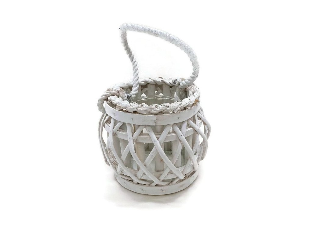 Lucerna skleněná s proutím 13cm LAMPION bílá