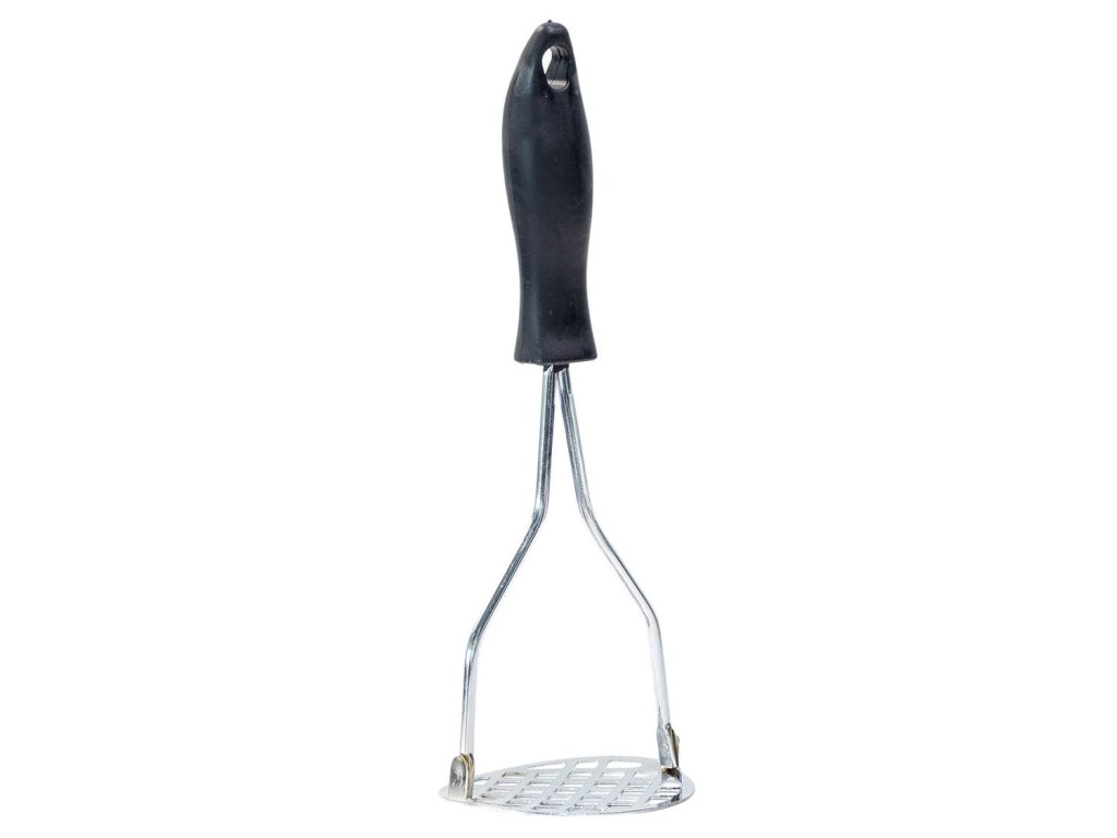 Nerezové mačkadlo brambor s plastovou rukojetí.