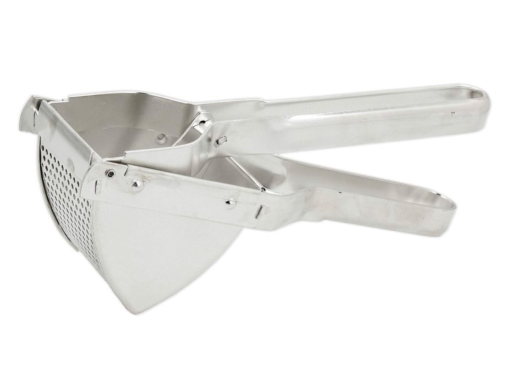 Pevný lis na brambory vyrobený z ocelového galvanicky leskle pocínovaného plechu.Slouží k lisování nebo-li pasírování vařeného ovoce, zeleniny, brambor a škvarků.