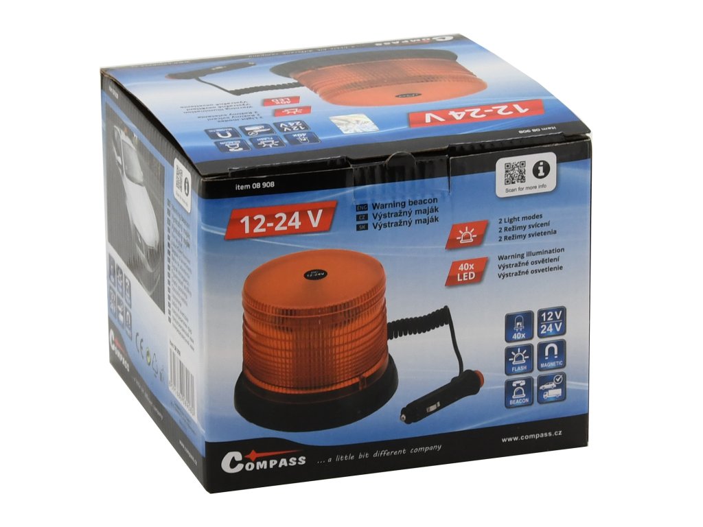 Napájecí zástrčka je opatřena krouceným (natahovacím) kabelem a tlačítkem pro postupné přepínání režimů svícení (blikání / otáčení).