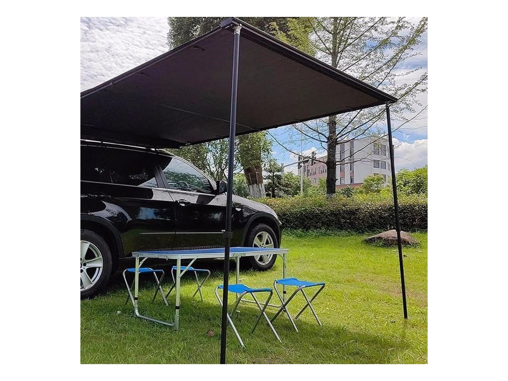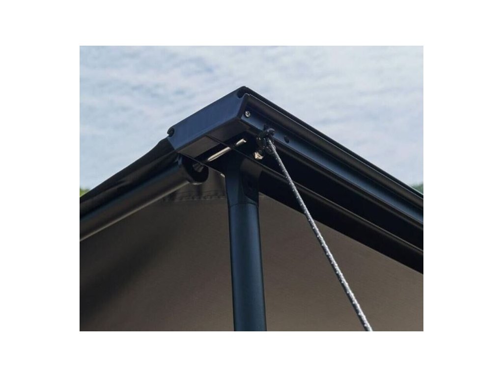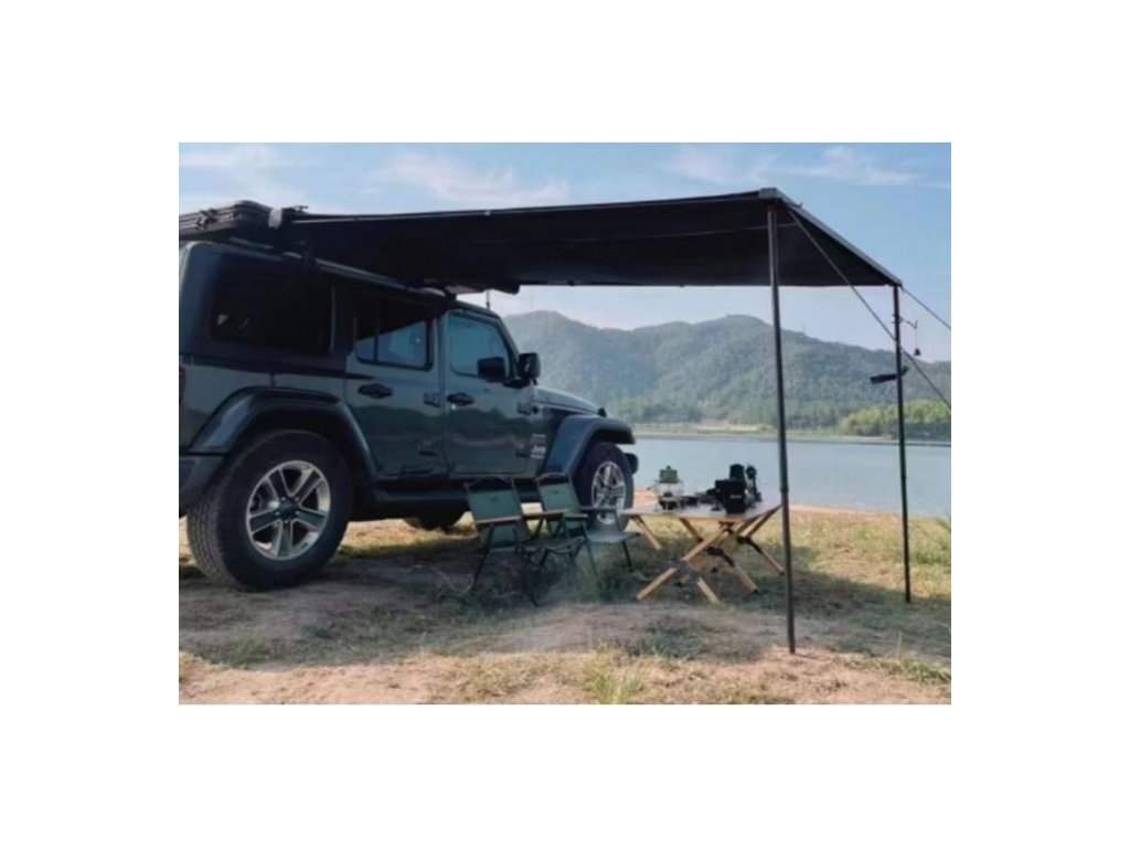 Markýza na auto boční černá 2x3m Markýza na bok auta z vysoce odolného Oxford materiálu s hodnotou vodního sloupce 2000mm, montážní ocelové Lka například na příčníky.Markýza se připevňuje na střešní nosič nebo na nosníky.Sada obsahuje roletu, montážní držáky a kryt.