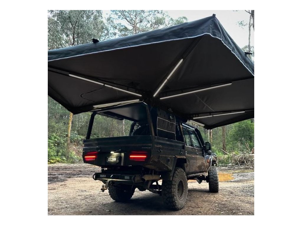 Markýza samonosná na auto vějířová 360° černá 2,5m na pravou stranu