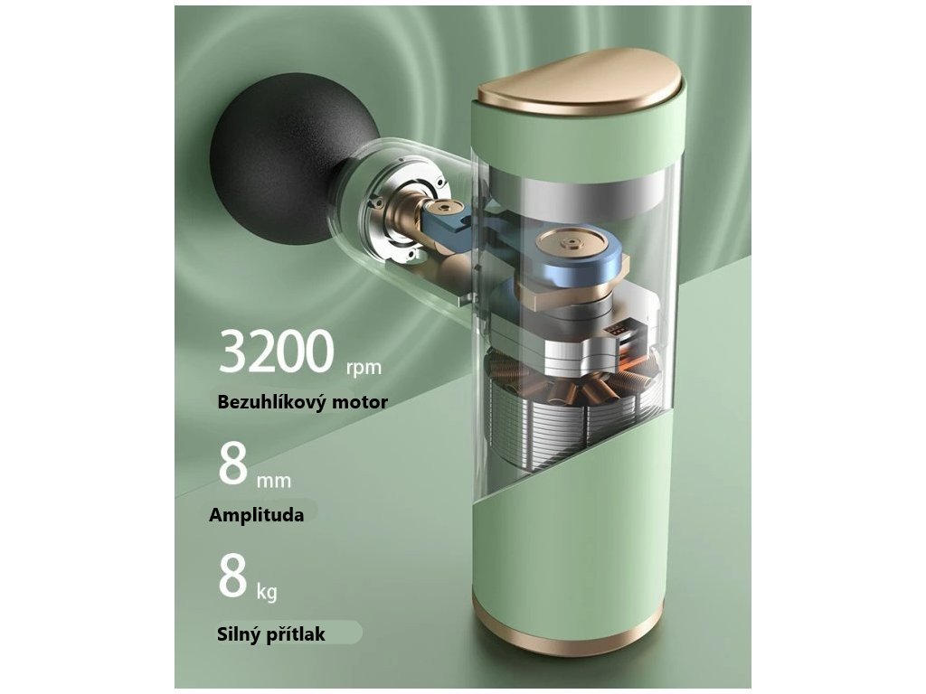 Masážní pistole mini GLOX GLOX609G s hliníkovým tělem představuje kompaktní a výkonné řešení pro uvolnění svalového napětí a rychlou regeneraci po fyzické aktivitě. Přístroj nabízí několik úrovní intenzity a výměnných nástavců pro cílenou masáž různých svalových skupin. Díky lehké konstrukci je ideální pro použití doma, v kanceláři i na cestách.