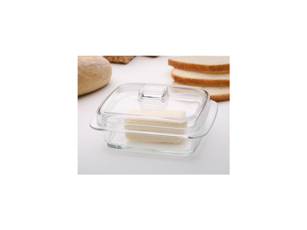 Vnější rozměry celkem 16.3 x 11 x 7 cm.Kvalitní skleněná máslenka s poklopem.