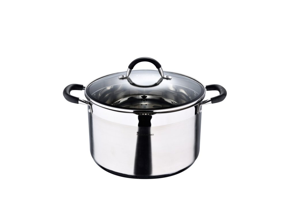 Velký nerezový hrnec pro vaření ve velkém – Tento prostorný hrnec FOODIES o průměru 28 cm a objemu 9,5 litru je ideální pro přípravu velkých porcí polévek, vývarů, dušených jídel nebo těstovin. Spojuje robustní provedení, chytré detaily a elegantní vzhled.