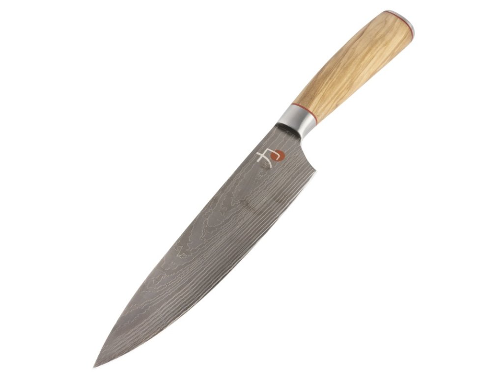 Všestranný a vysoce kvalitní nůž pro profesionální kuchaře i nadšence – Tento kuchařský nůž s čepelí o délce 20 cm je ideální pro širokou škálu kuchyňských úkolů, od krájení masa a zeleniny až po precizní plátkování. Elegantní a ergonomická rukojeť z olivového dřeva přidává na komfortu a vzhledu.
