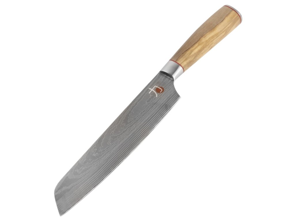 Rukojeť z olivového dřeva – přírodní materiál, který je příjemný na dotek, a poskytuje pohodlný a pevný úchop.