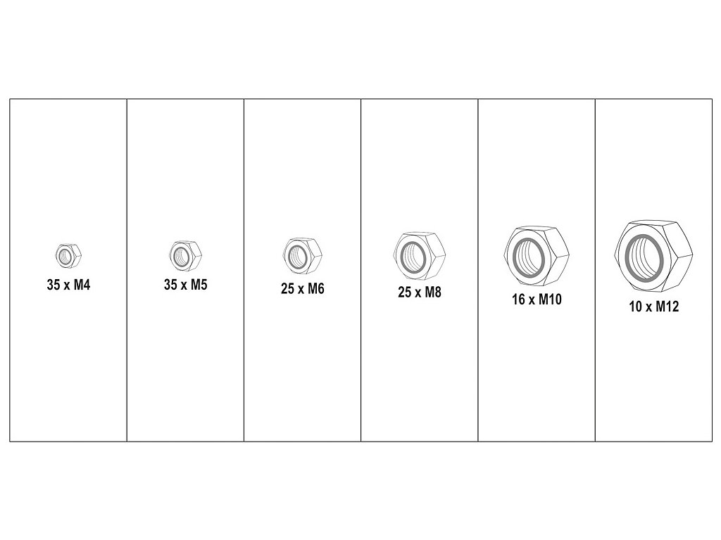 Sada 146 ks kvalitních pojistných matic s nylonem.