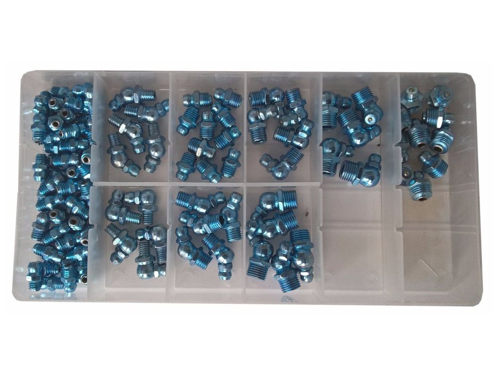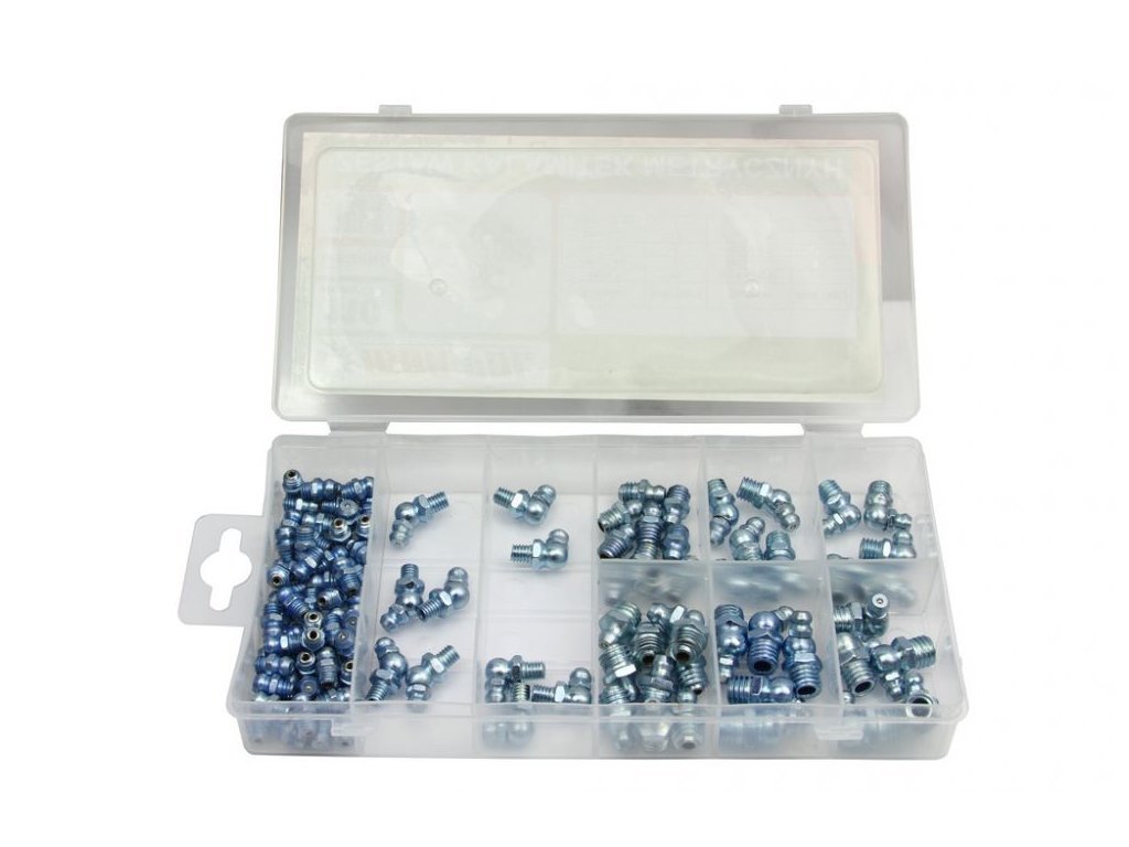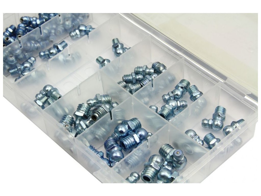 Sada mazacích hlavic s metrickým závitem 110ks umístěná v plastovém kufříku s přihrádkami.
