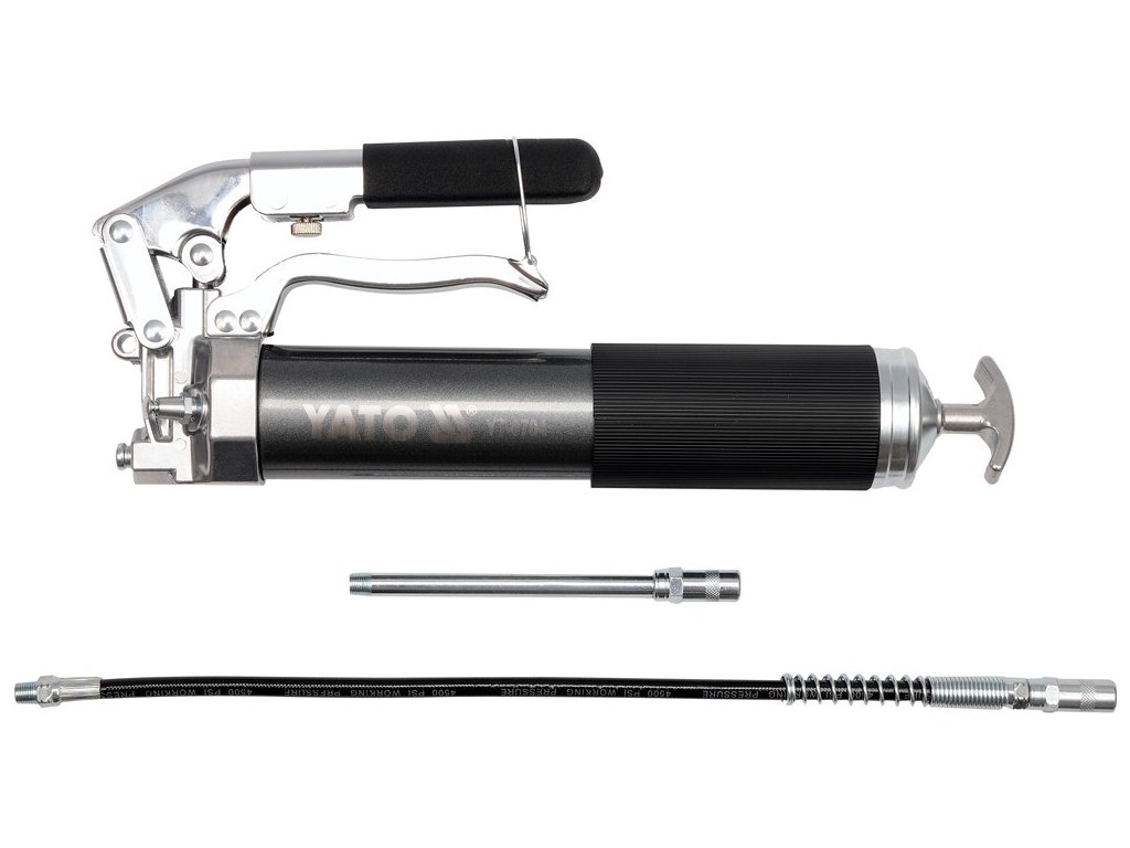 Tělo maznice je zhotoveno z hliníku, páka je délkově nastavitelná v rozmezí 200 - 300 mm.