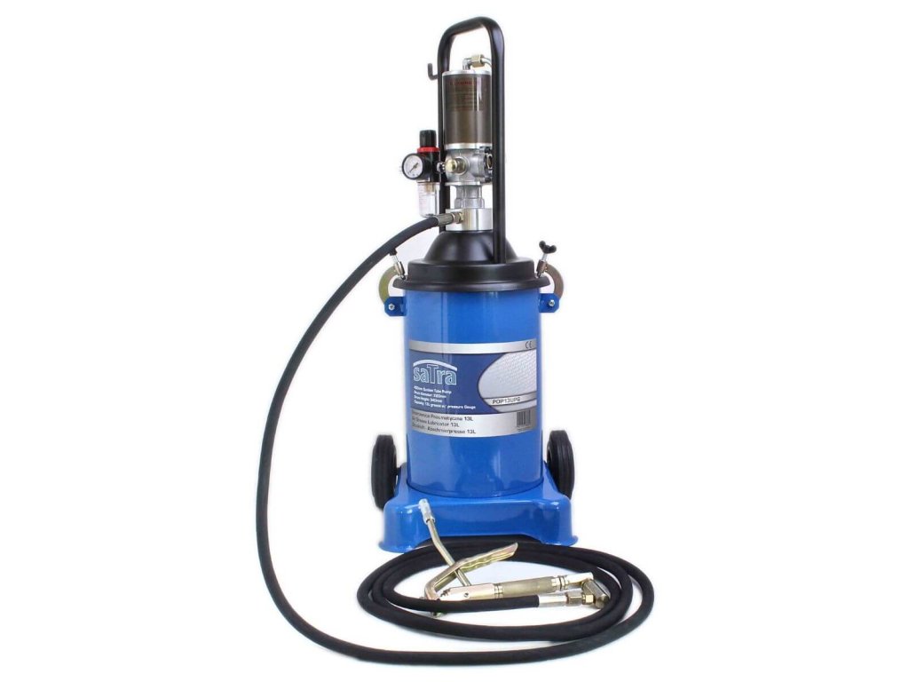 Pojízdná pneumatická maznice, 4metrová hadice a přípojná pistole, pro 13 kg maziva – SATRA POP13UPG.