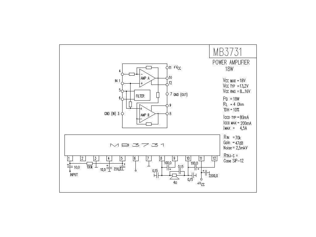 MB3731 - nf zesilovač 18W, SIP-12Doplňkové parametry