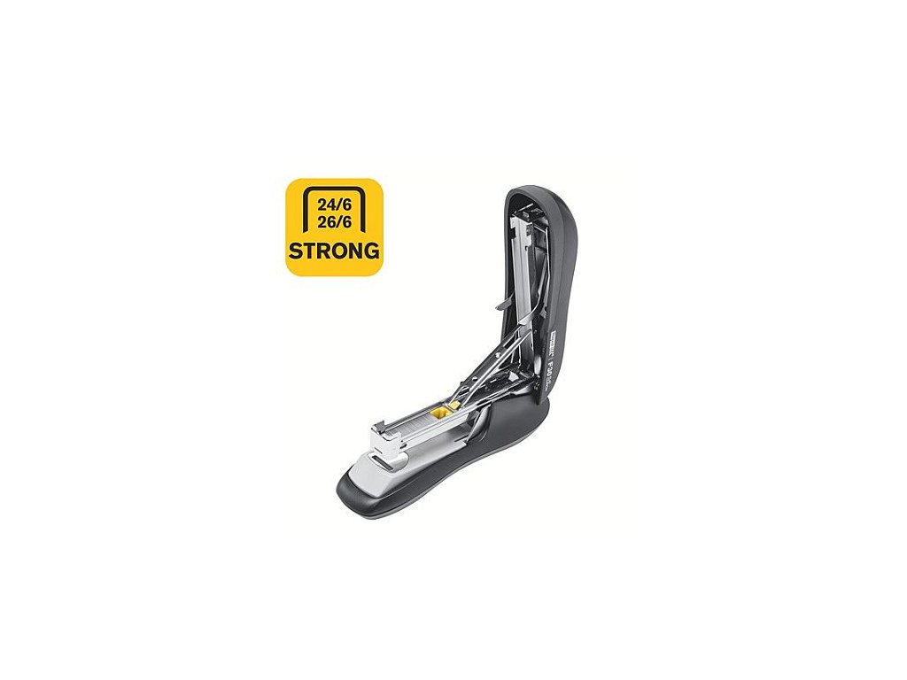 Ergonomická poloproužková sešívačka s technologií Flat Clinch se silnou ocelovou konstrukcí pro přesné sešívání.