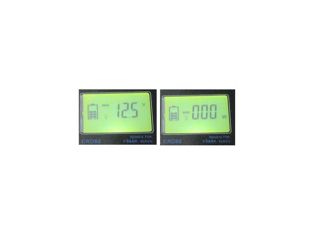 LCD displej se zobrazením napětí baterie [DCV] [ a okamžitého odběru [W] - údaje se zobrazují postupně v periodě cca 1s