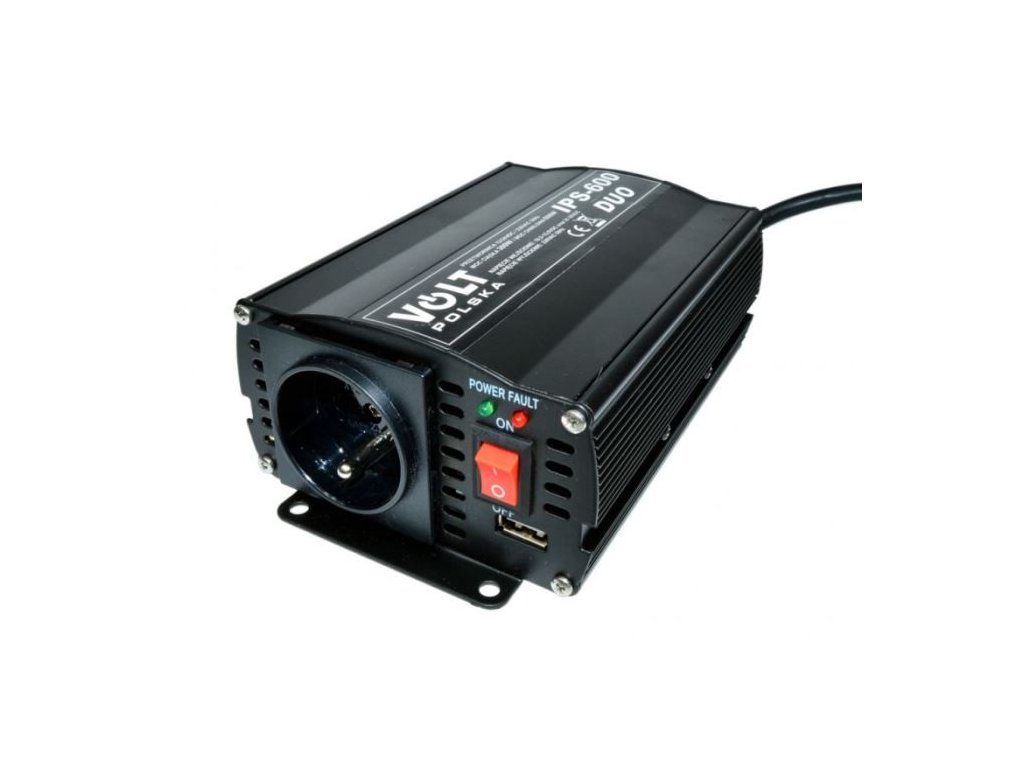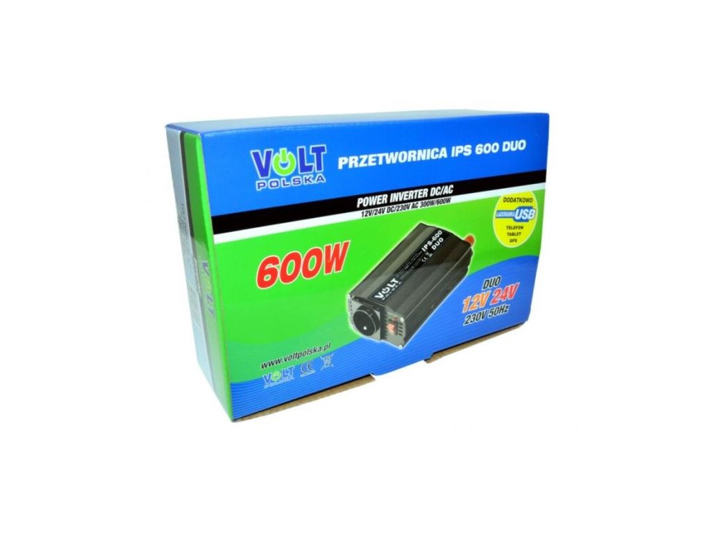 Měnič napětí DUO 12-24V/230V 300W modifikovaná sinusovka, VOLTPOLSKA Výstup 300W trvale, 600W špička+5V/800mA(USB). Napájení 10,5-31V, Účinnost při plném zatížení 92%, Mez podpěťové ochrany 10,7 V (+ -0,3V), Přípustná provozní teplota -10 ° C - 40 ° C, Výstupní napětí 225 V - 235 VManuál k produktu je ke stažení zde