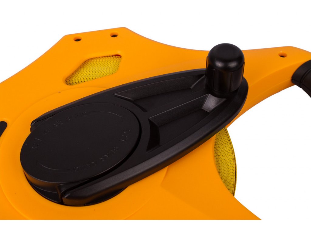 Měřící pásmo o délce 50 metrů značky Hoteche se sklopnou kličkou pro rychlé navíjení využijete při vyměřování větších ploch, na stavbách, zahrádkách, apod.