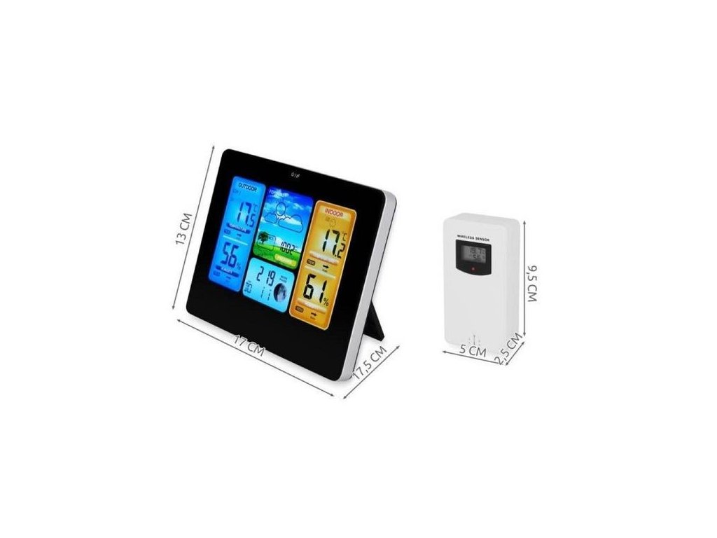 Meteorologická stanice s bezdrátovým snímačem, barevný displej