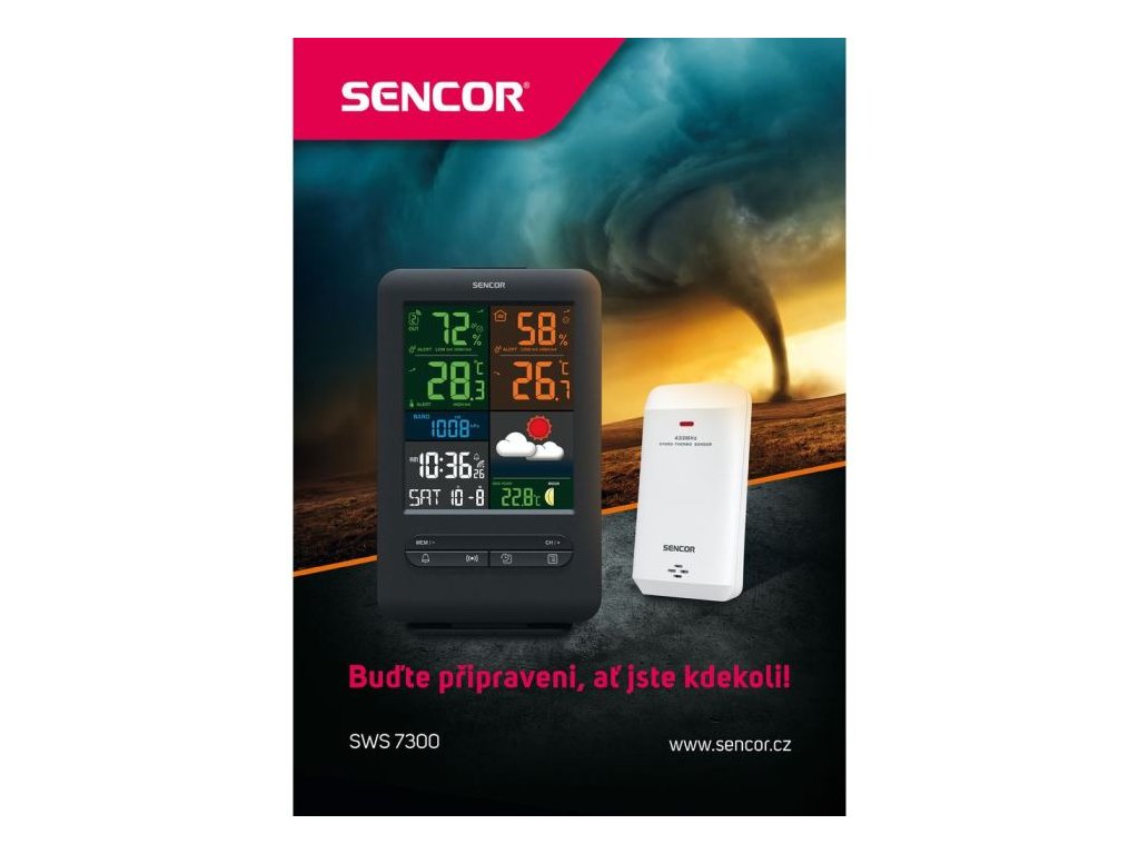 Meteostanice SWS 7300 SENCOR Barevný displej s úhlopříčkou 5,4” (13,8 cm)Ikona předpovědi počasí (slunečno, oblačno, zataženo, déšť, sněžení)