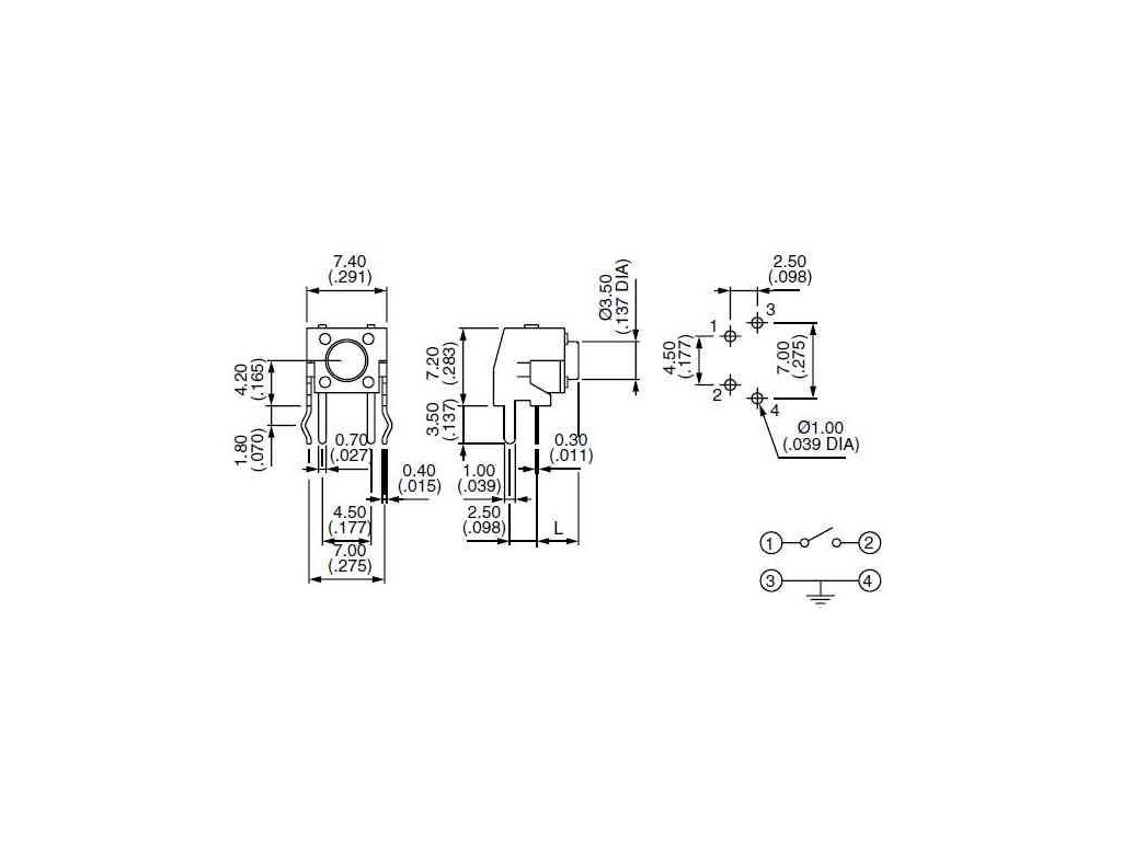 Mikrospínač 6x6mm úhlový v=10,85mm délka hmatníku=7,3mmDoplňkové parametry