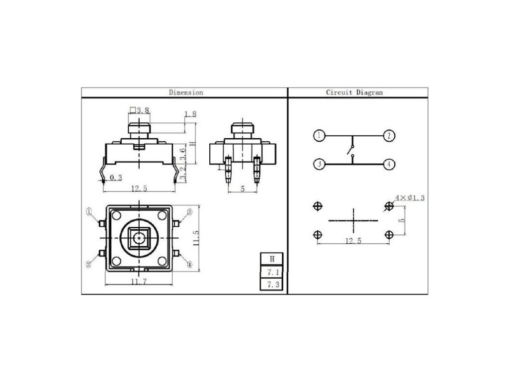 Mikrospínač TS-F006, 12x12x7,3mmDoplňkové parametry