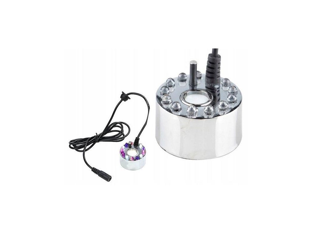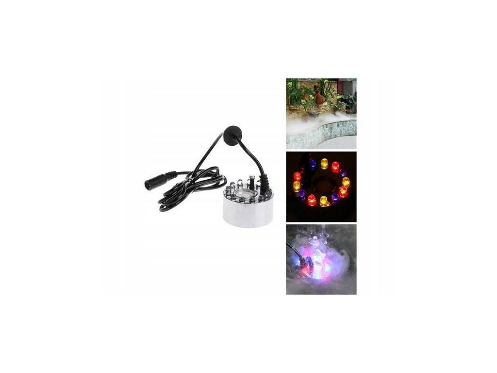 Mini mlhovač 12 LED Mlhovač vytváří na principu inhalačního zařízení dekorativní mlhu, která navíc zvyšuje relativní vlhkost vzduchu v místnosti. Vytvořte si s jeho pomocí příjemnou atmosféru v bytě. Do vody lze případněpřidat omezené množství vonných látek.12 LED diod neustále mění barvu mlhy a vytváří barevnou atmosféru.