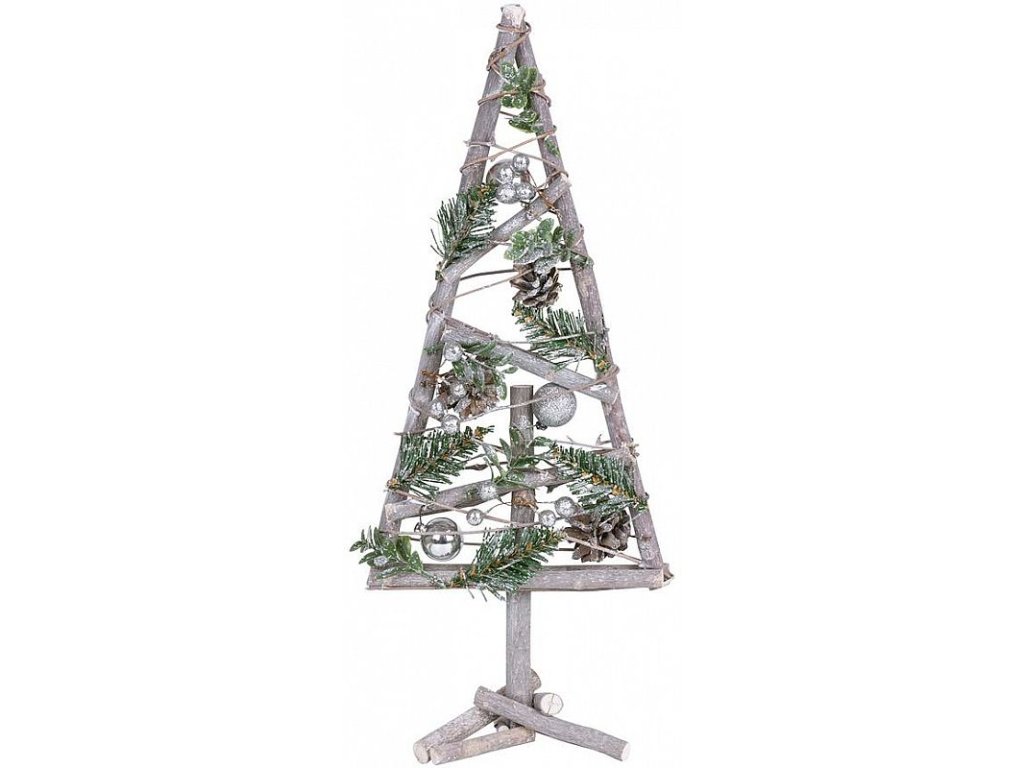 Mini stromek MagicHome dřevěný, stříbrné baňky, 20x3x47cm